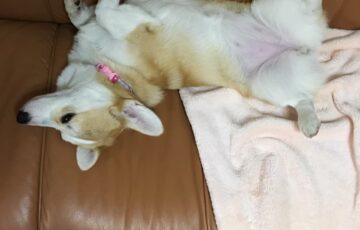 さて、コーギーむぎちゃんははみ出てるようです(/・ω・)/