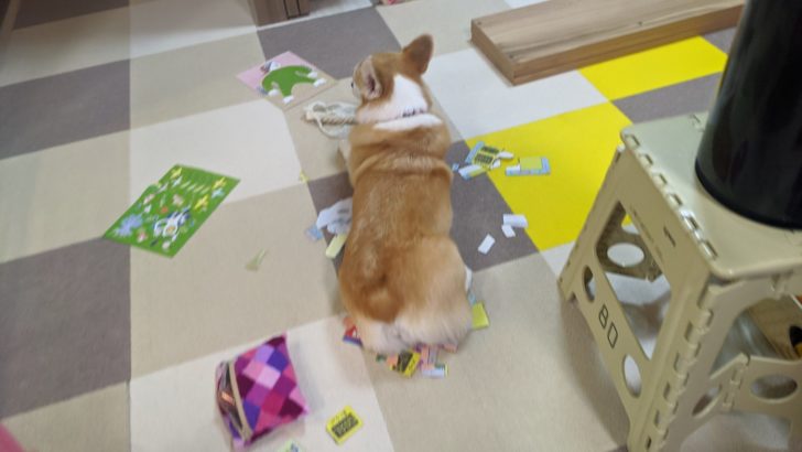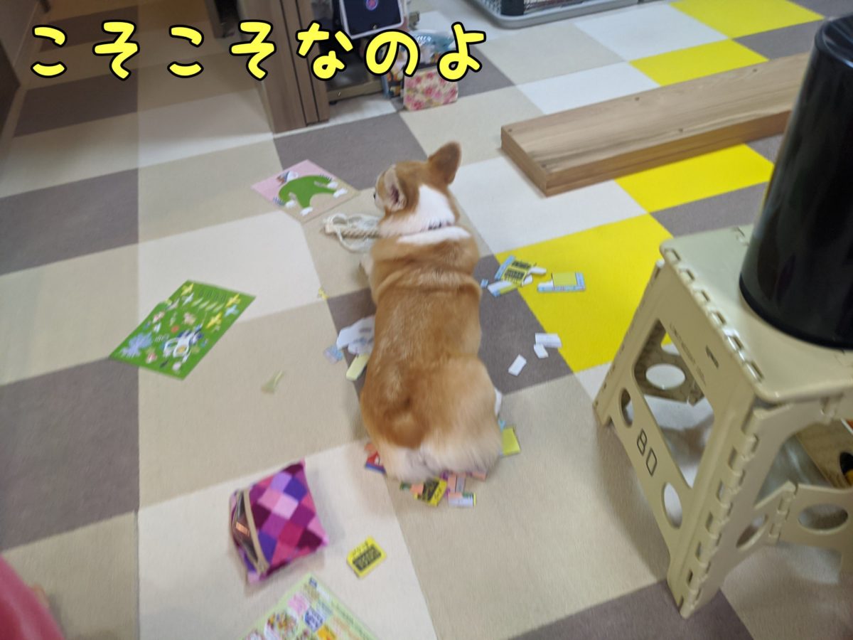 娘ちゃんが散らかしているのはともかく、むぎちゃんはなにしてるの|д゚)
