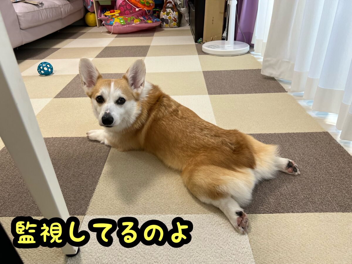 さて、コーギーむぎちゃんは監視するようです(/・ω・)/