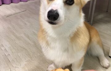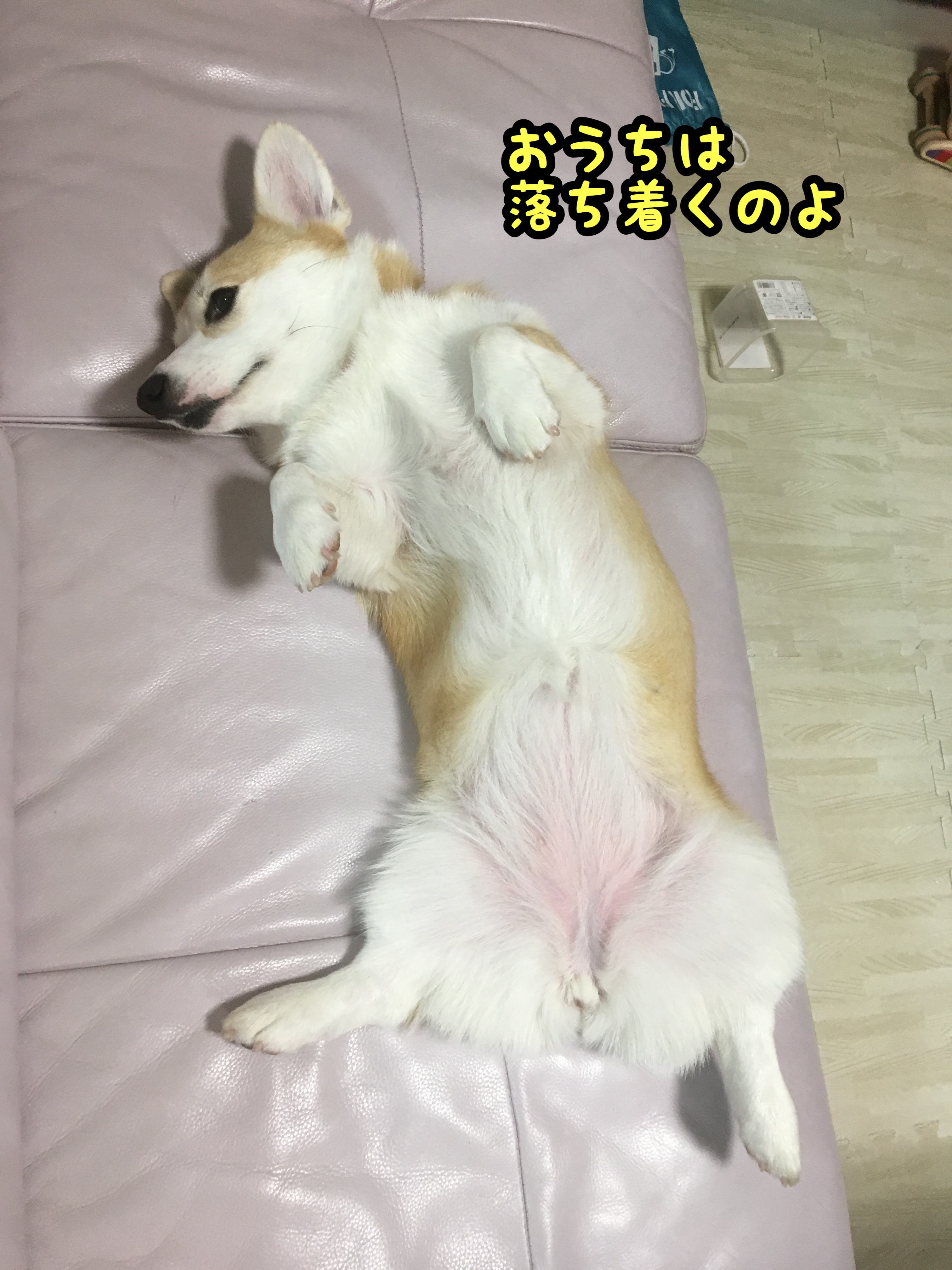 さて、コーギーむぎちゃんはちょっと避難しているようです(/・ω・)/