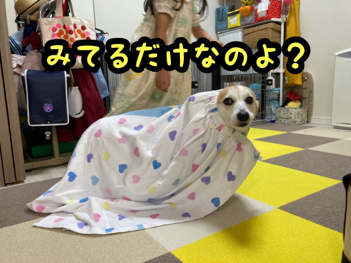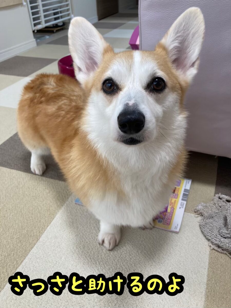 さて、コーギーむぎちゃんは見てないで助けてほしいようです(/・ω・)/