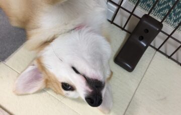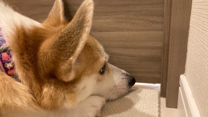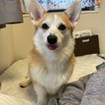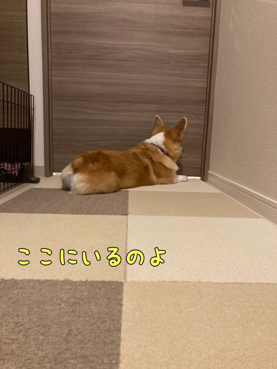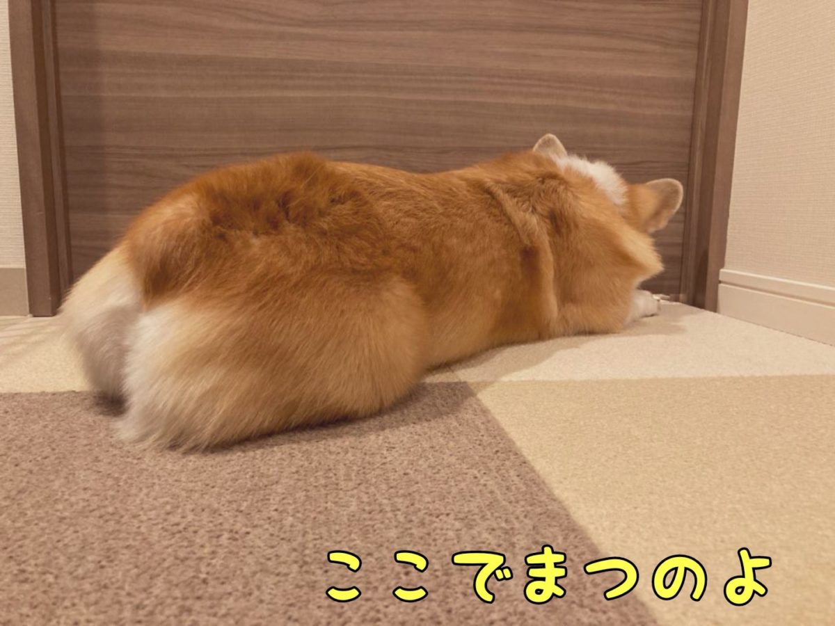 さて、コーギーむぎちゃんはでできるだけ至近距離でまつようです(/・ω・)/
