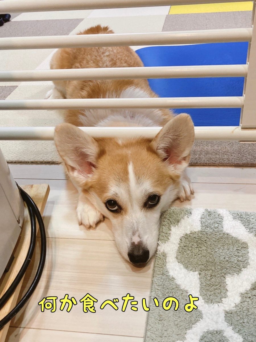 さて、コーギーむぎちゃんはおなかが減ってしまってなんでもいいから食べたいようです(/・ω・)/