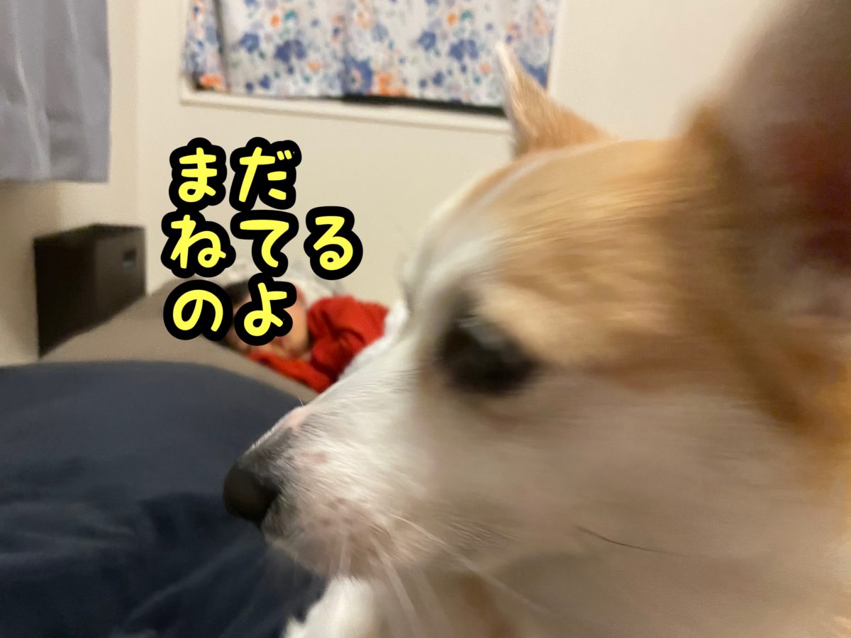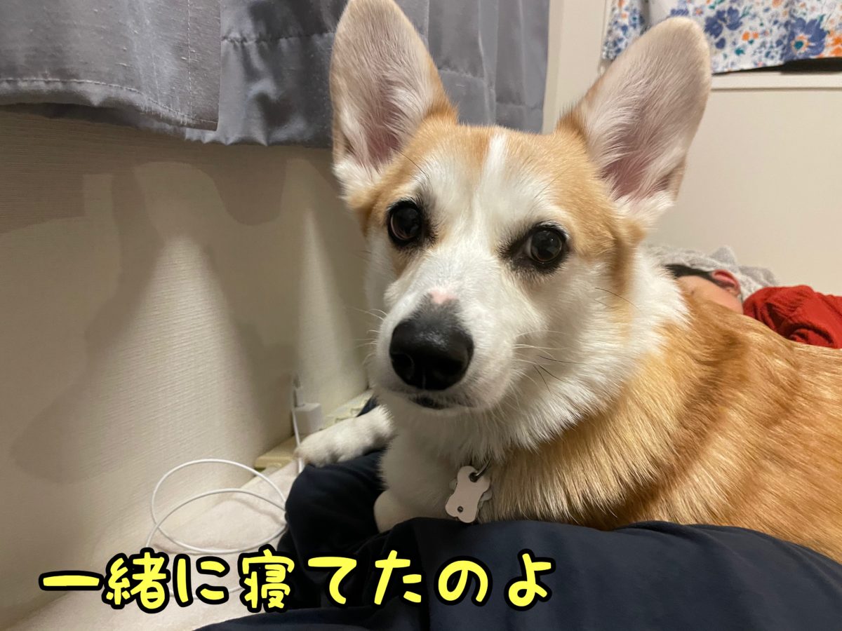 さて、コーギーむぎちゃんは添い寝をしていたようです(/・ω・)/