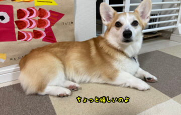 さて、コーギーむぎちゃんは見えないワンポイントがあるようです(/・ω・)/