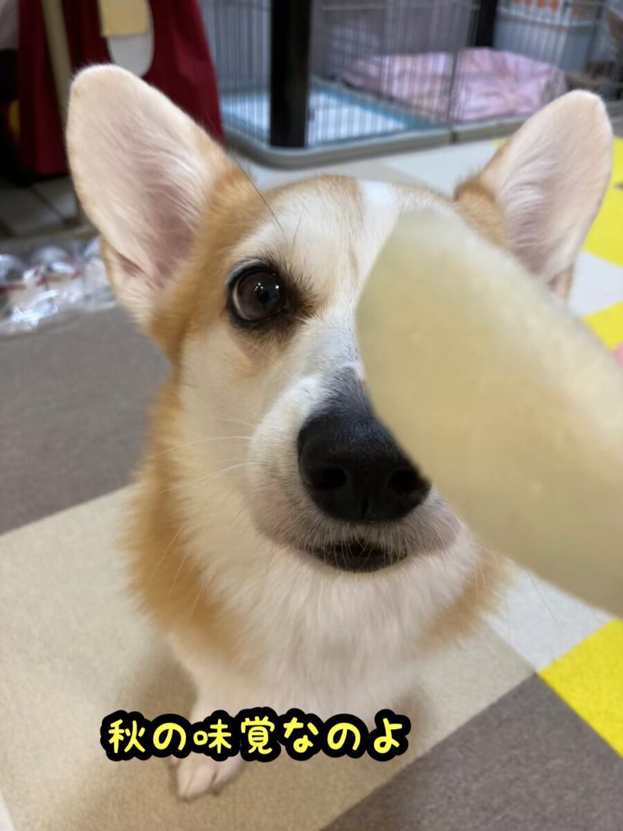 さて、コーギーむぎちゃんは秋の味覚を楽しむようです(/・ω・)/