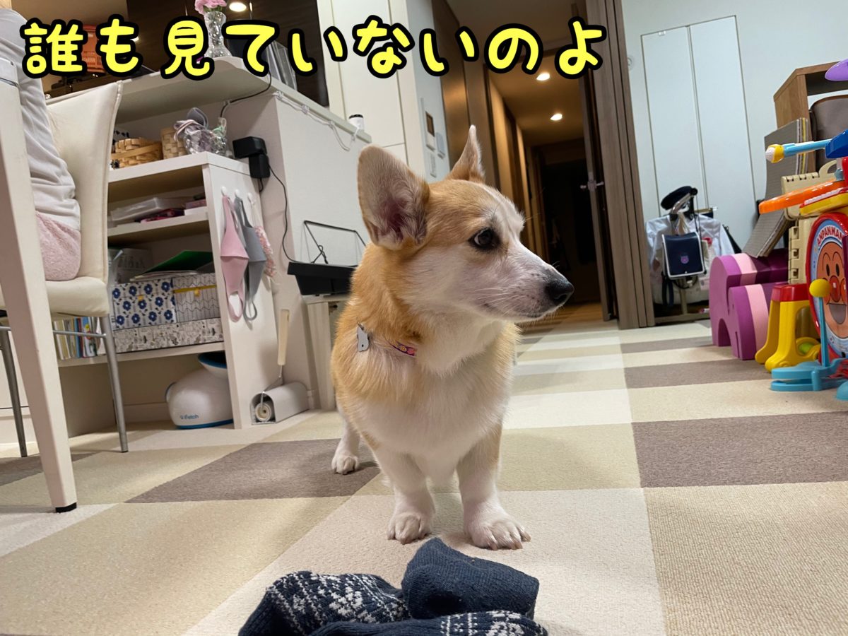 さて、コーギーむぎちゃんはばれてたようです(/・ω・)/