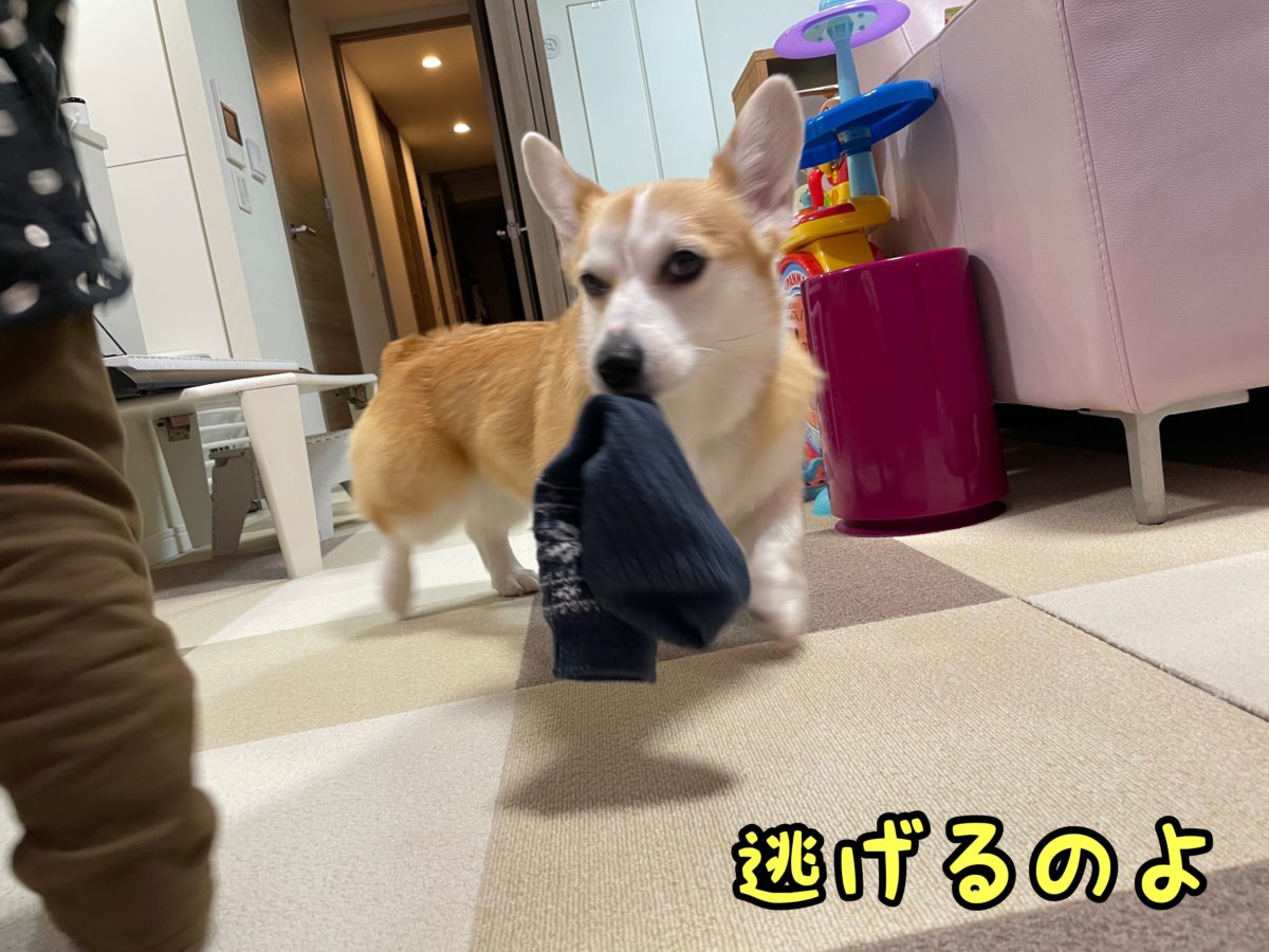 さっと靴下を奪い取るむぎちゃん(・Д・`)