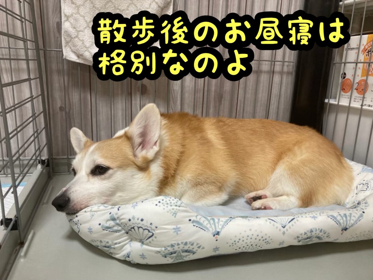 さて、コーギーむぎちゃんは散歩後は良く寝れるようです(/・ω・)/
