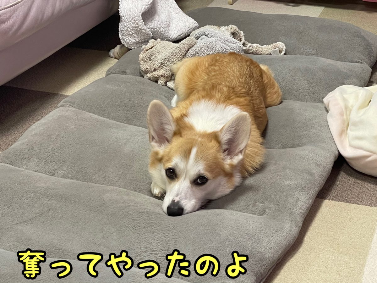 さて、コーギーむぎちゃんは占領するようです(/・ω・)/