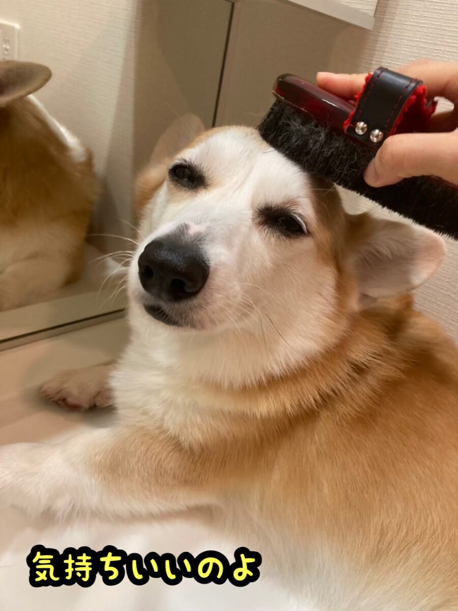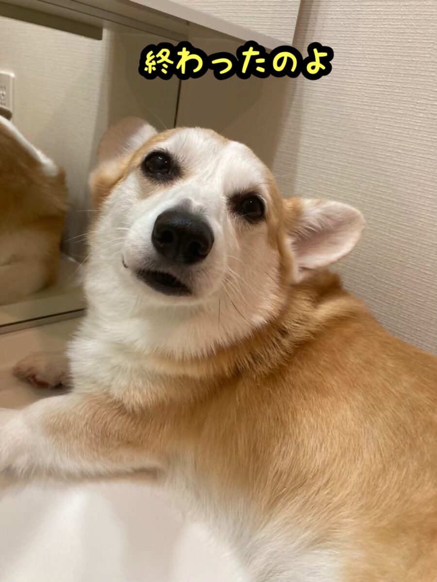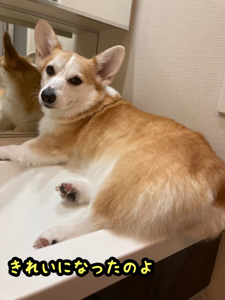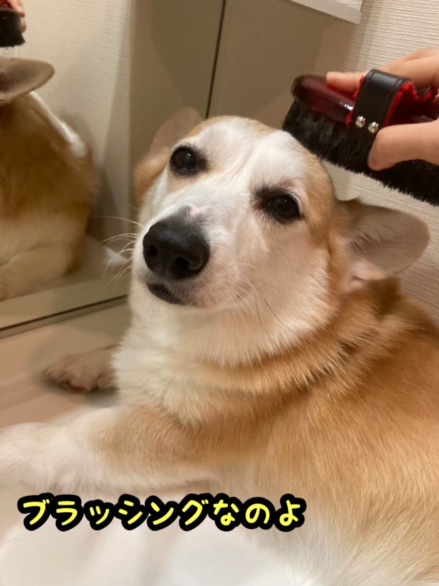 さて、コーギーむぎちゃんは身だしなみを整えるようです(/・ω・)/