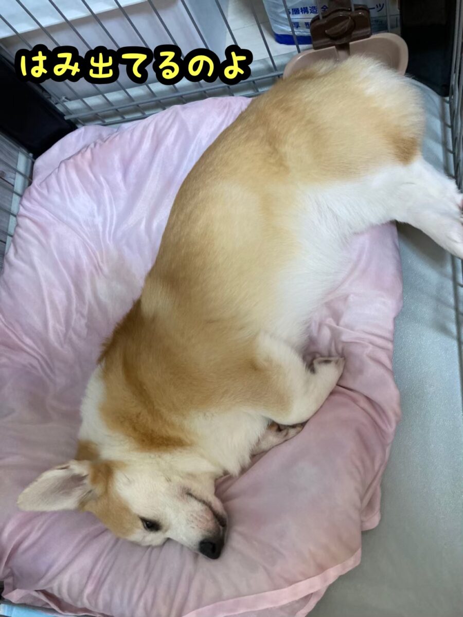さて、コーギーむぎちゃんははみでているようです(/・ω・)/