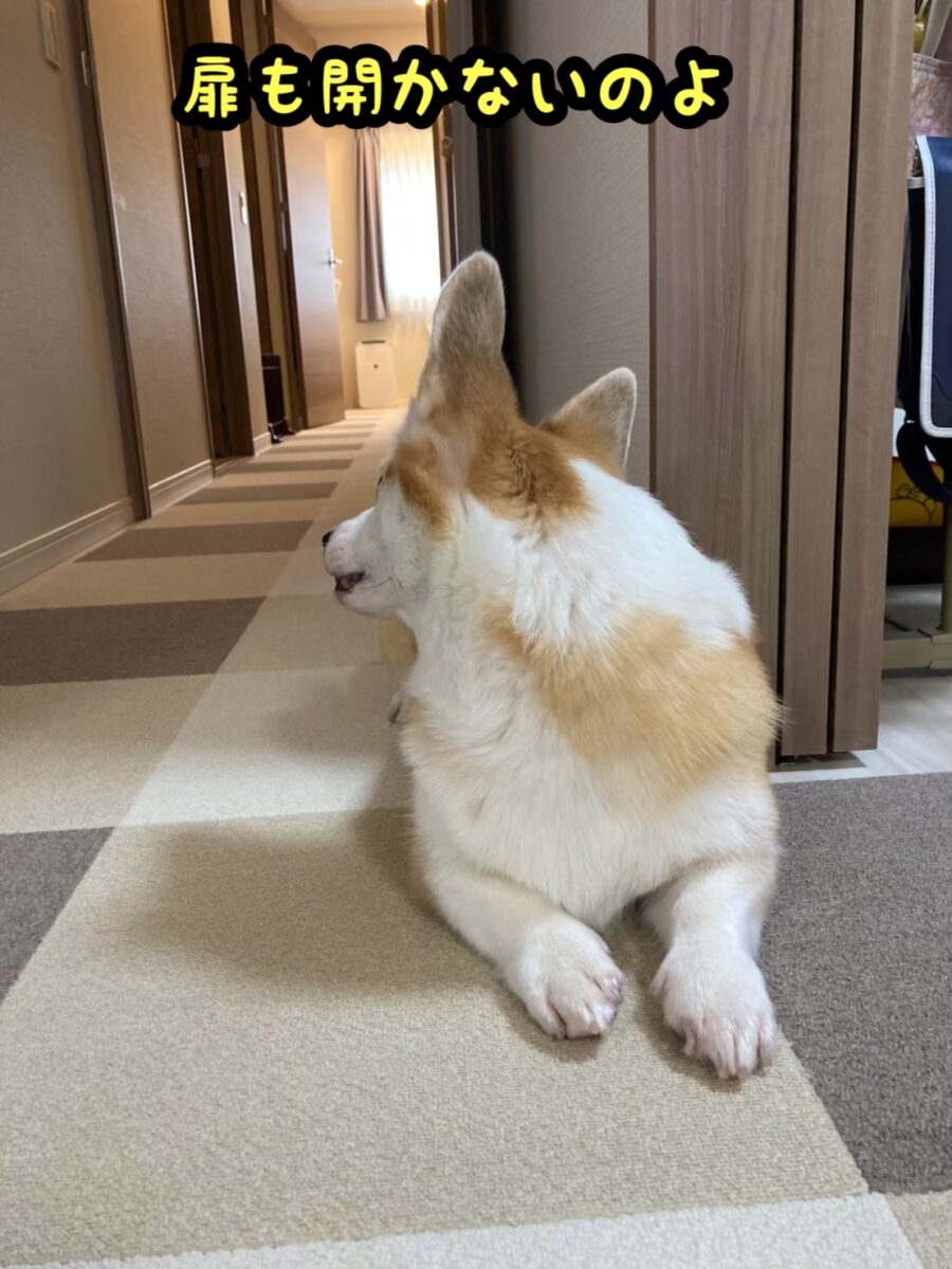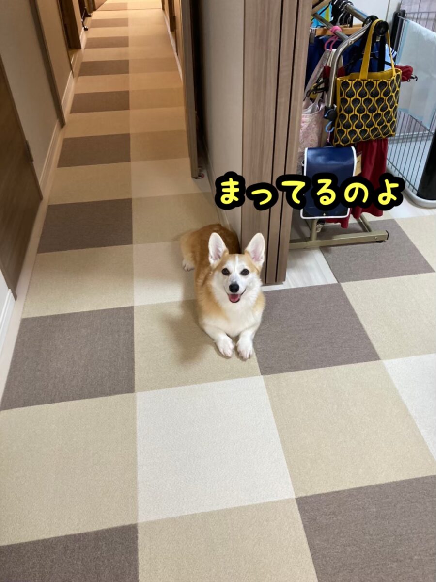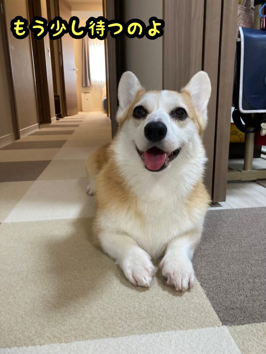 さて、コーギーむぎちゃんは待っているようです(/・ω・)/