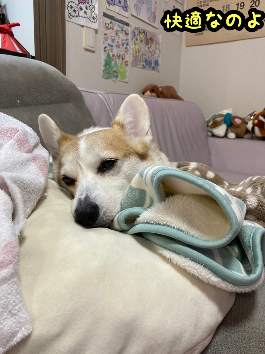 さて、コーギーむぎちゃんは奪ってまったりするようです(/・ω・)/