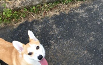 さて、コーギーむぎちゃんはまぶしいようです(/・ω・)/