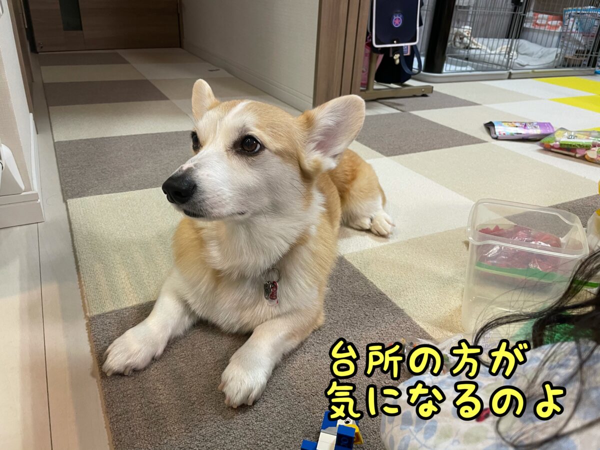 さて、コーギーむぎちゃんはあっちのほうが気になるようです(/・ω・)/