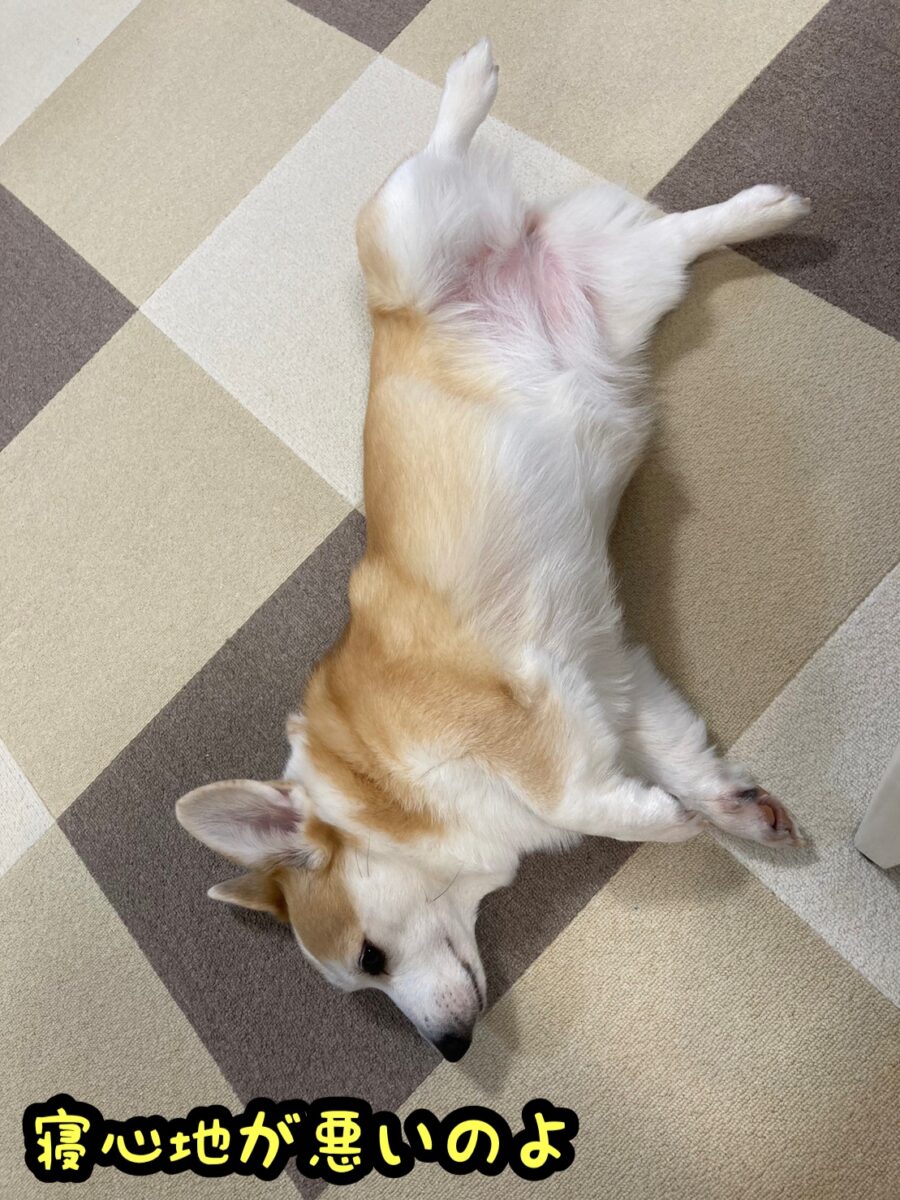さて、コーギーむぎちゃんはそれでも快適だそうです(/・ω・)/
