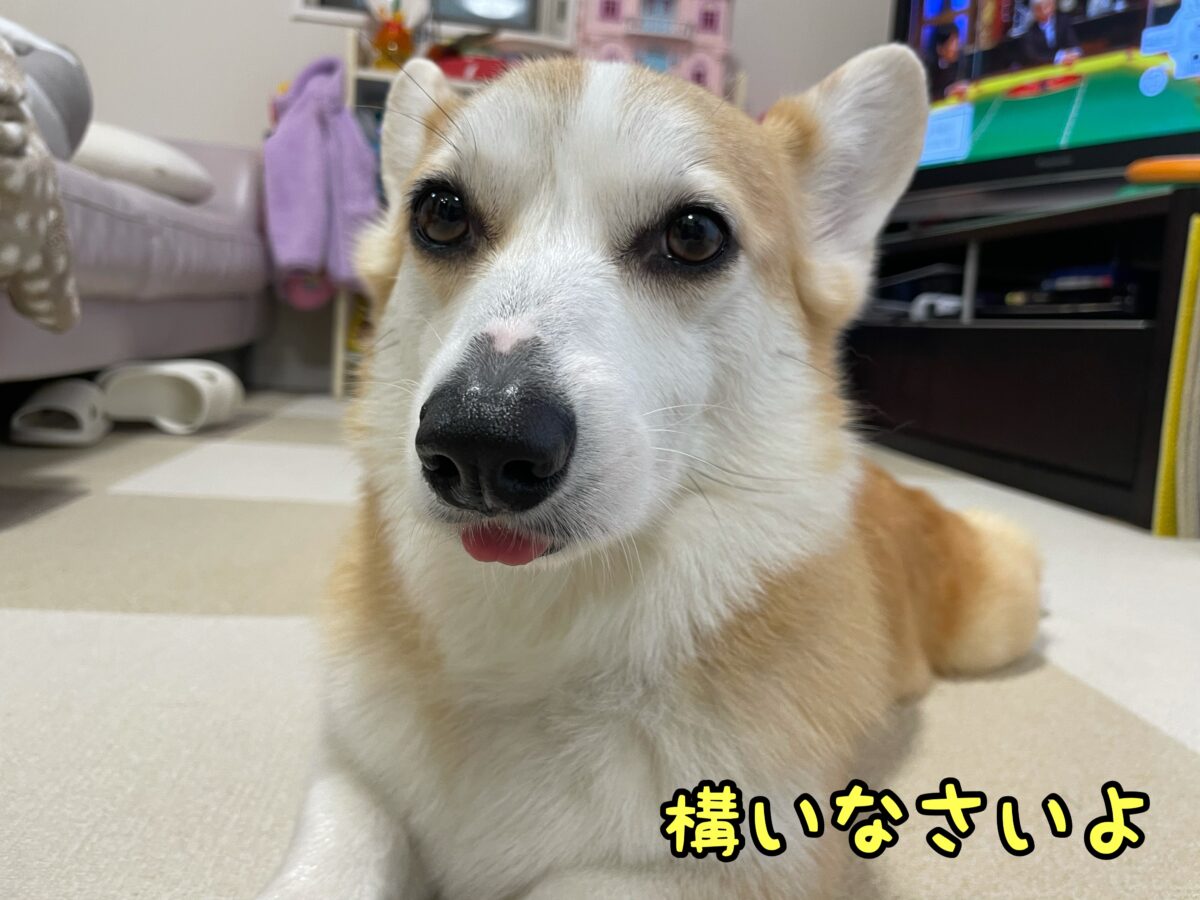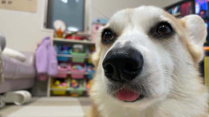 さて、コーギーむぎちゃんはどアップになるようです(/・ω・)/