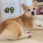 さて、コーギーむぎちゃんはアクロバティックな体勢がいいようです(/・ω・)/